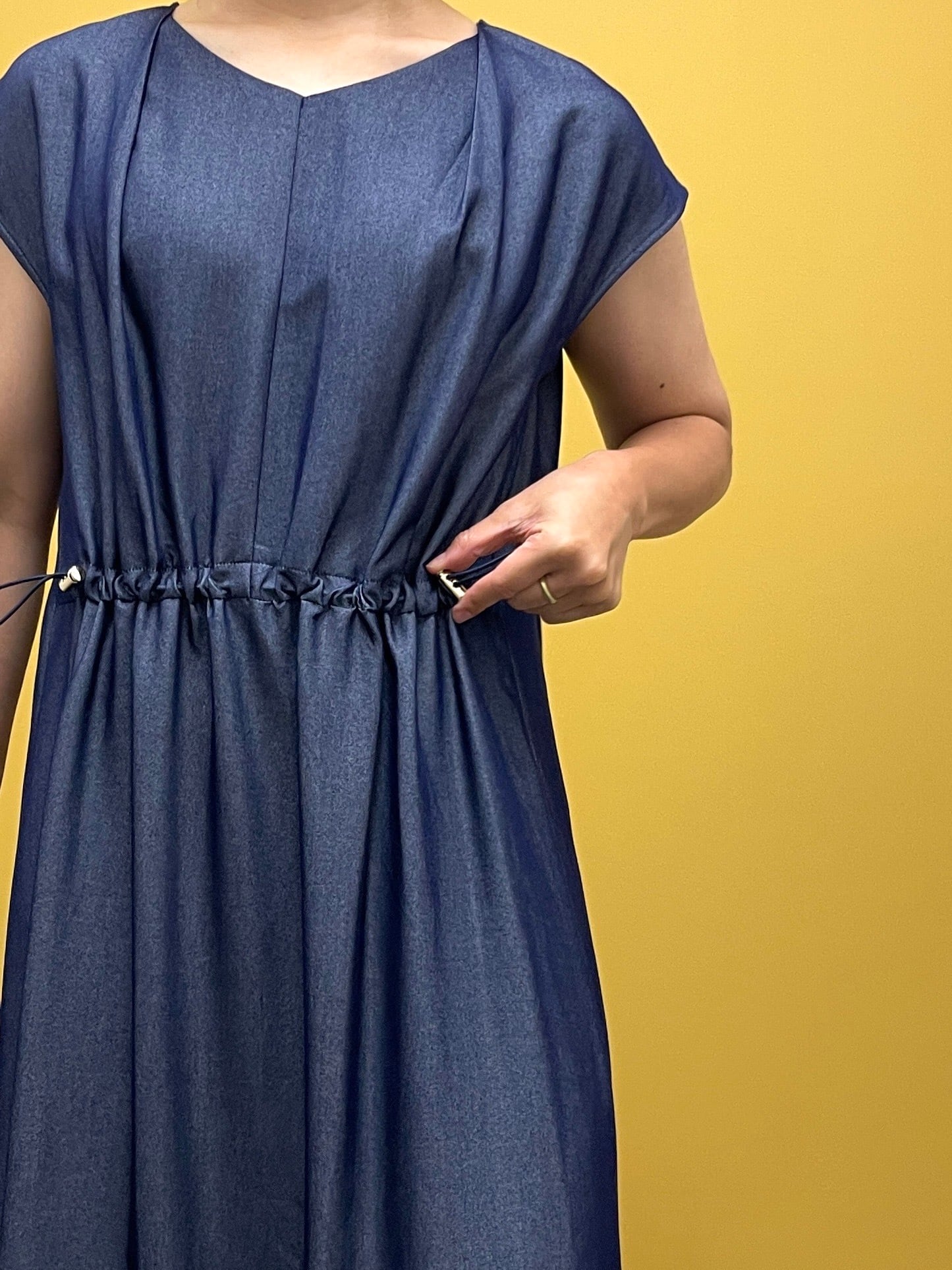 軽い着心地のデニムワンピース。
