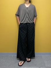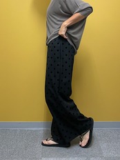 凹凸感のあるドットが印象的なワイドパンツ。