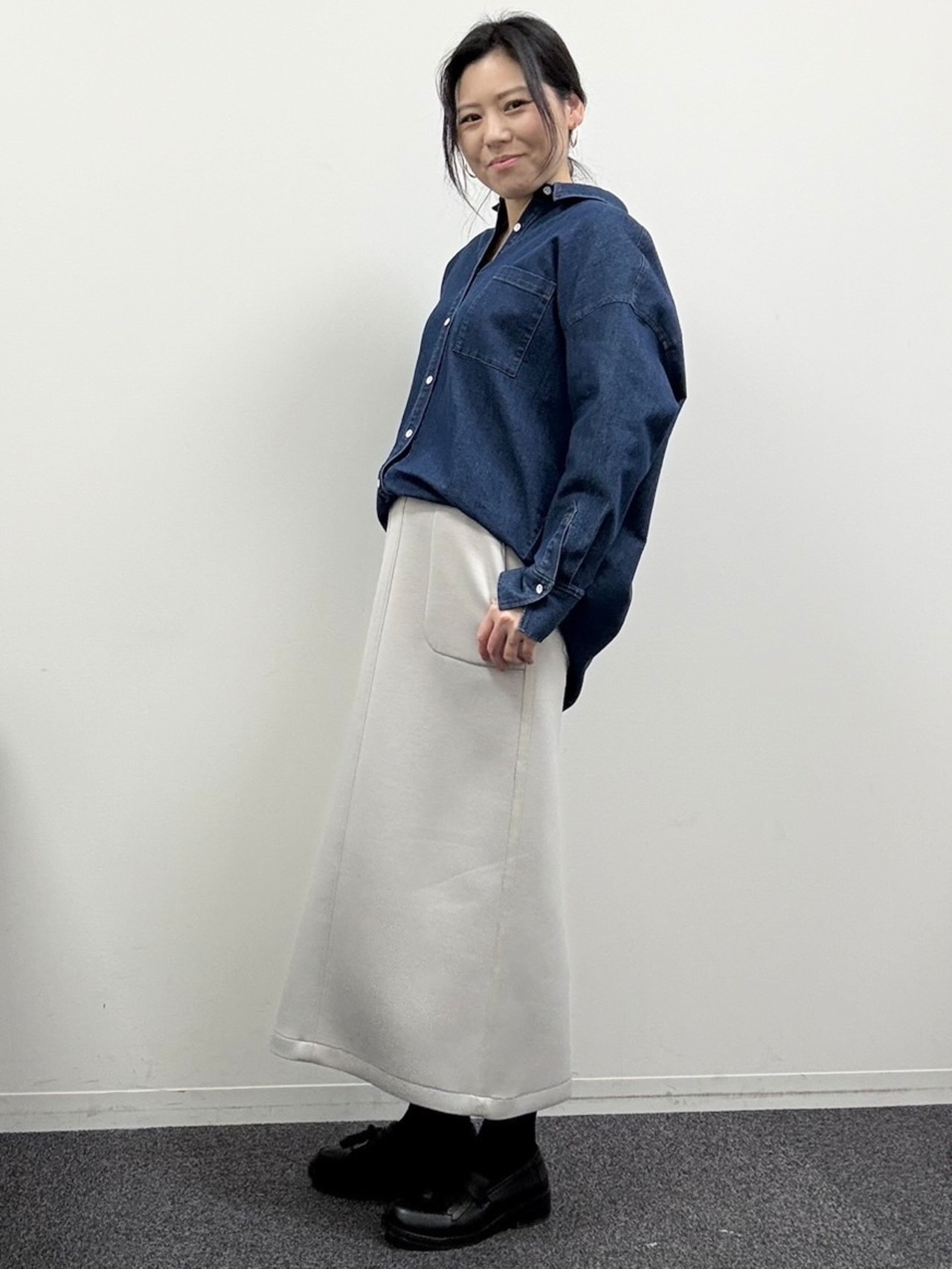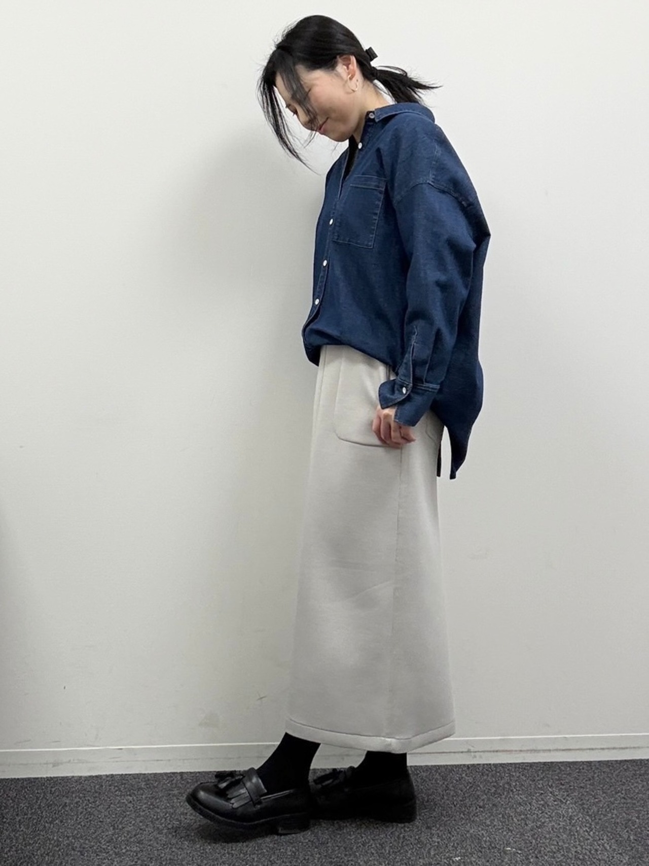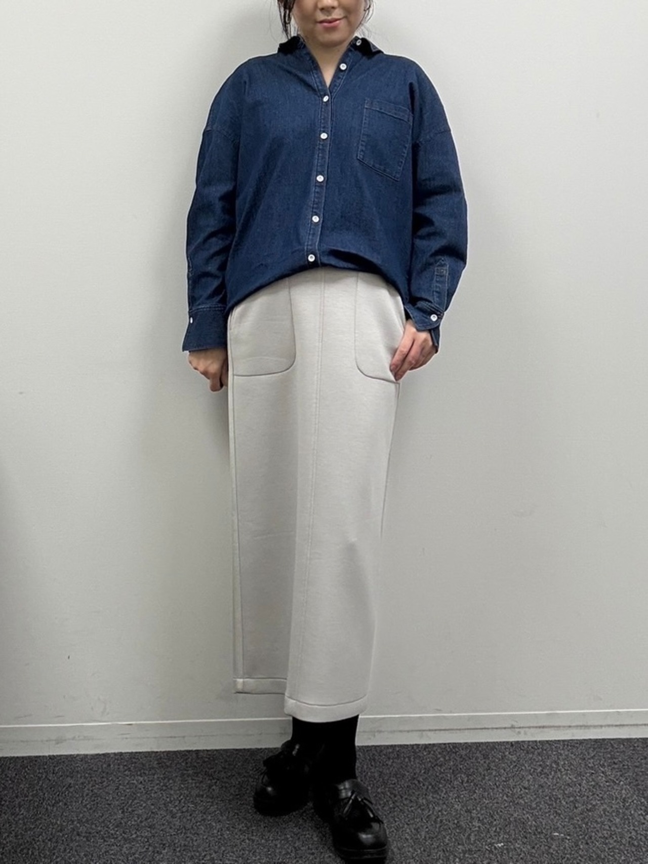 後ろボタンスリットデニムシャツ(1001358)