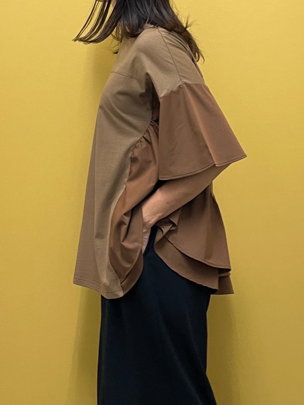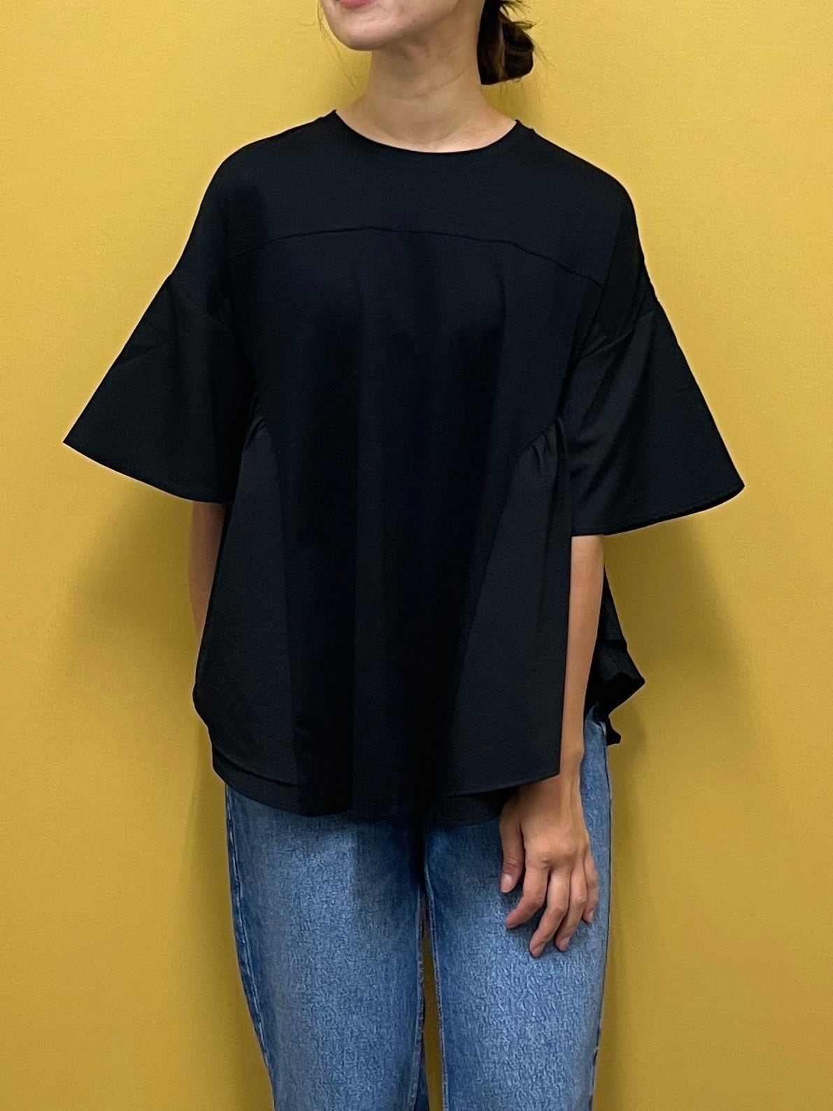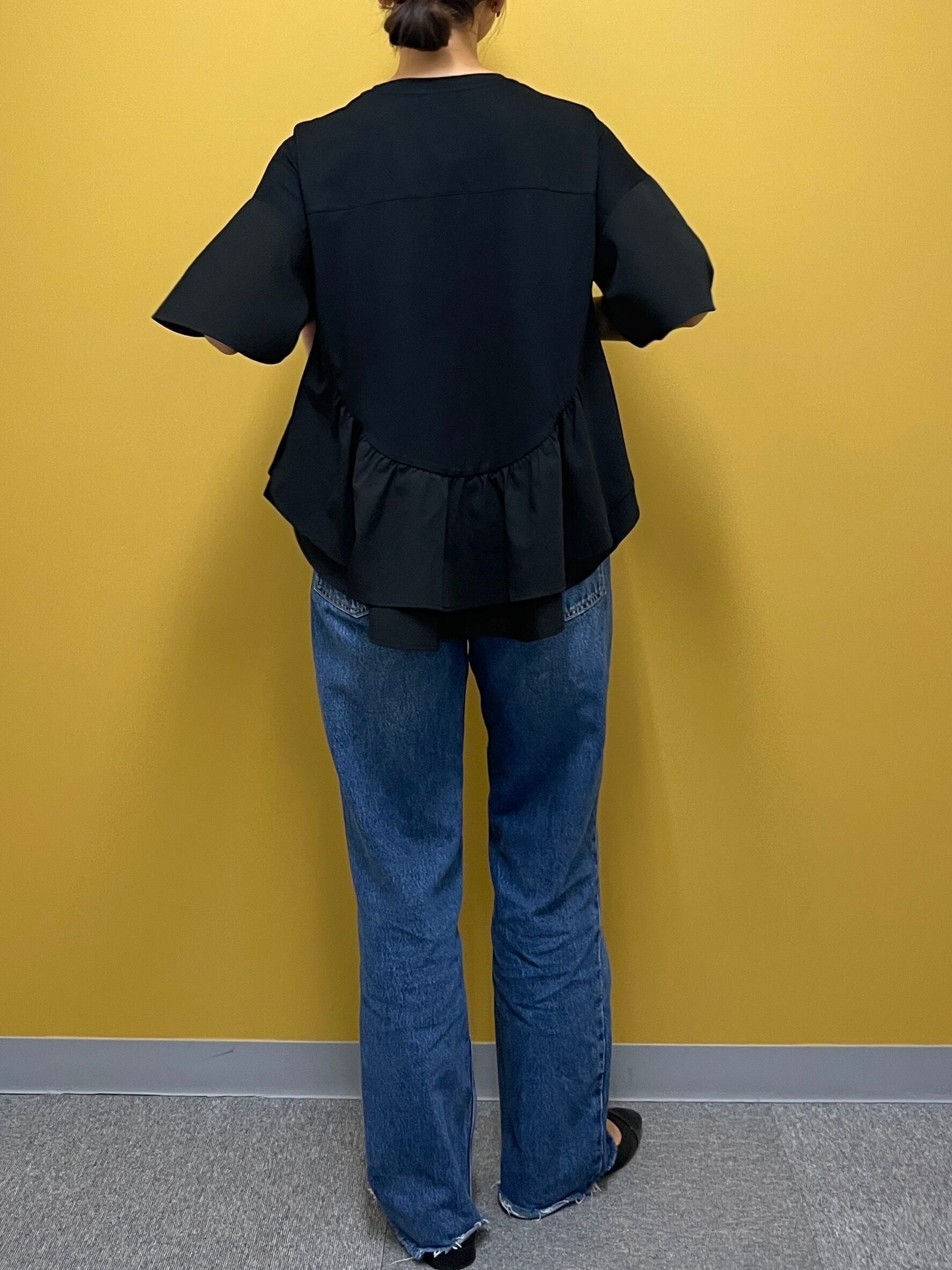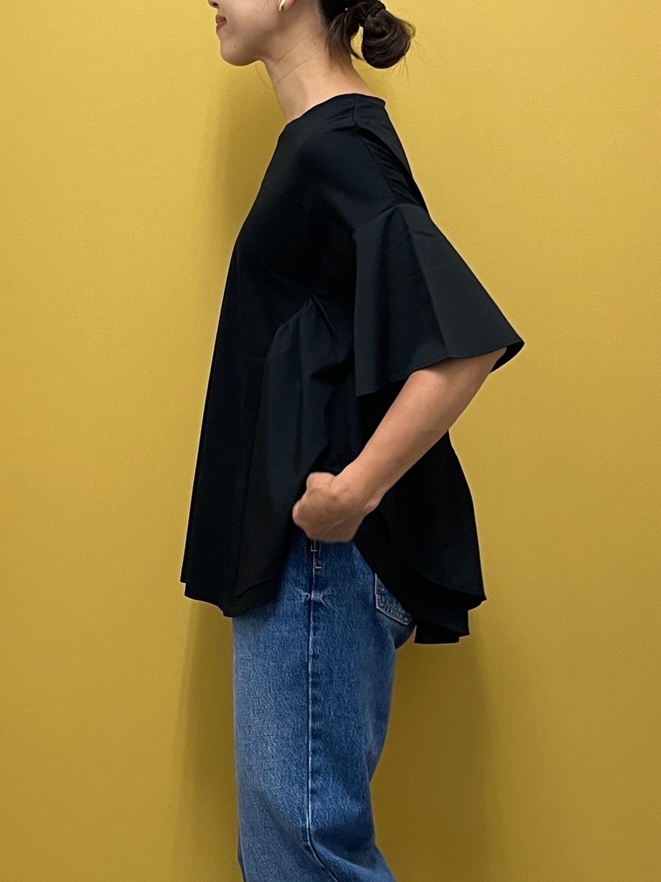 5分袖で腰回りもカバーできる長さが嬉しいフリルTシャツ✨