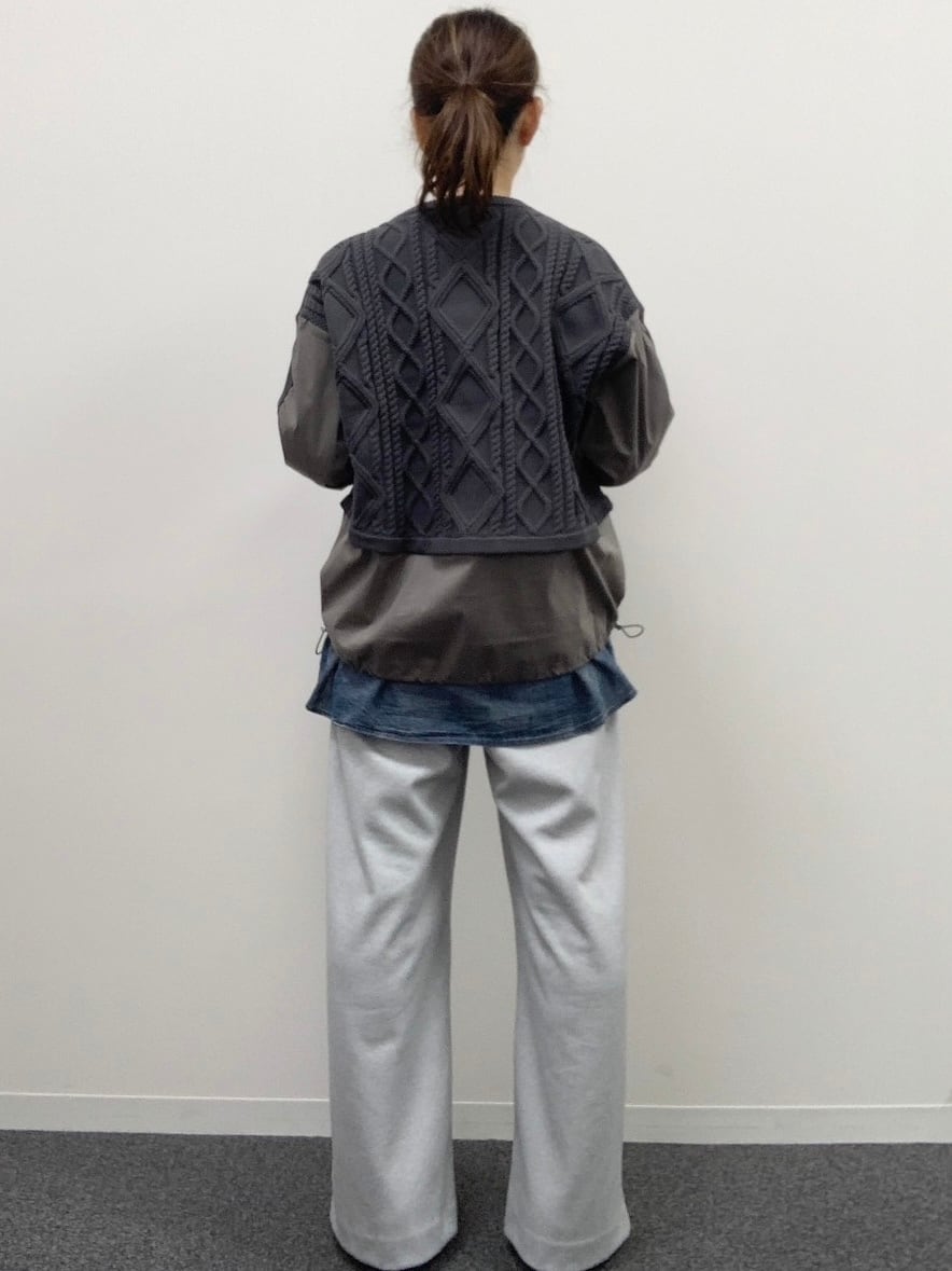 後ろ身頃にはケーブルが施されており、シンプルながらも、工夫を凝らしたディテールがスタイルを引き立てます!