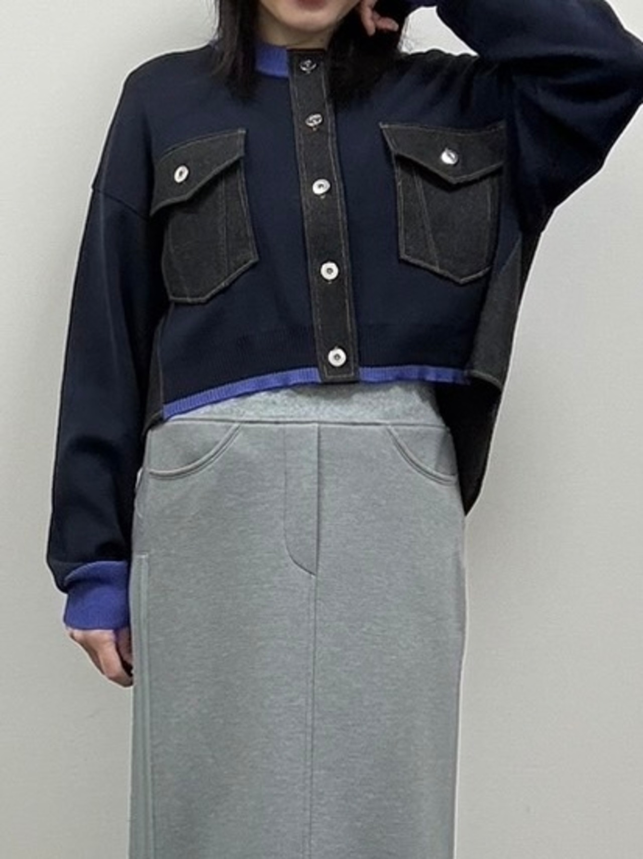 異素材カラーブロックカーデ(3001555)▶️